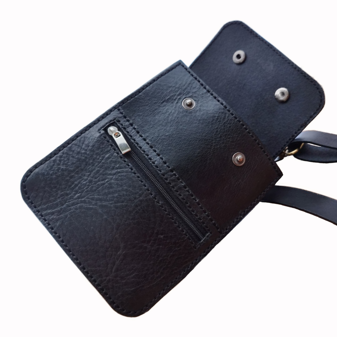 Divided into three practical compartments to organize your phone, wallet, keys and other essentials.