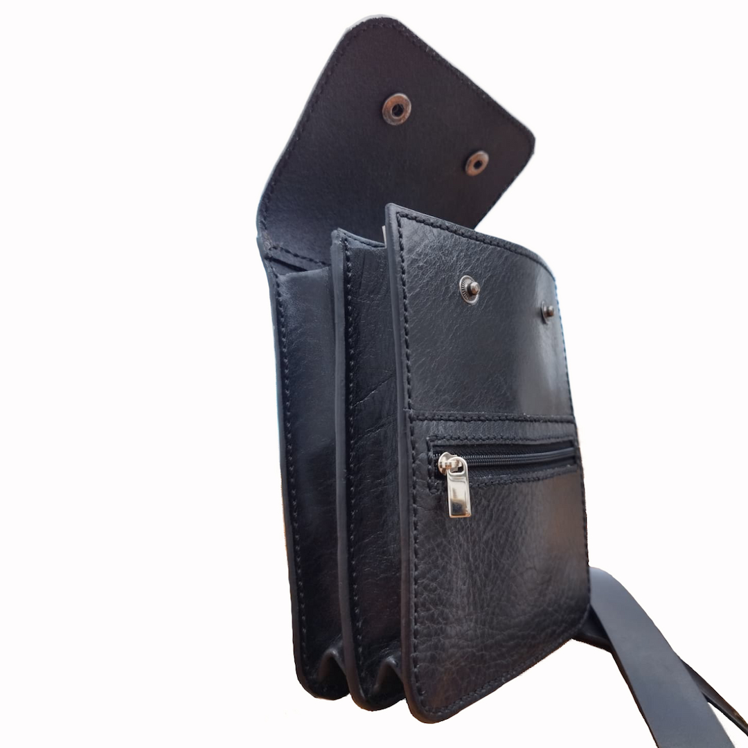 It features secure metal snap closures, an exterior zippered pocket for quick-access items, and a spacious, practical interior for everyday use. A piece designed for those who seek functionality without compromising the authenticity of artisan-crafted leather.