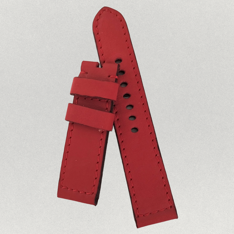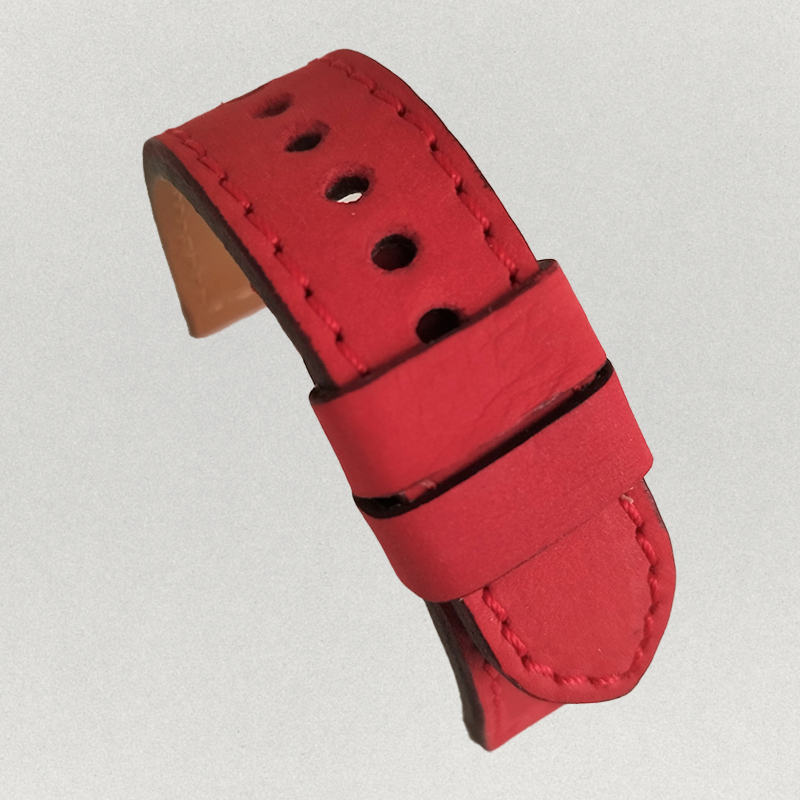 Nubuck cowhide leather strap, with a soft and flexible texture. Leather interior, matte edges, and a fixed pin.