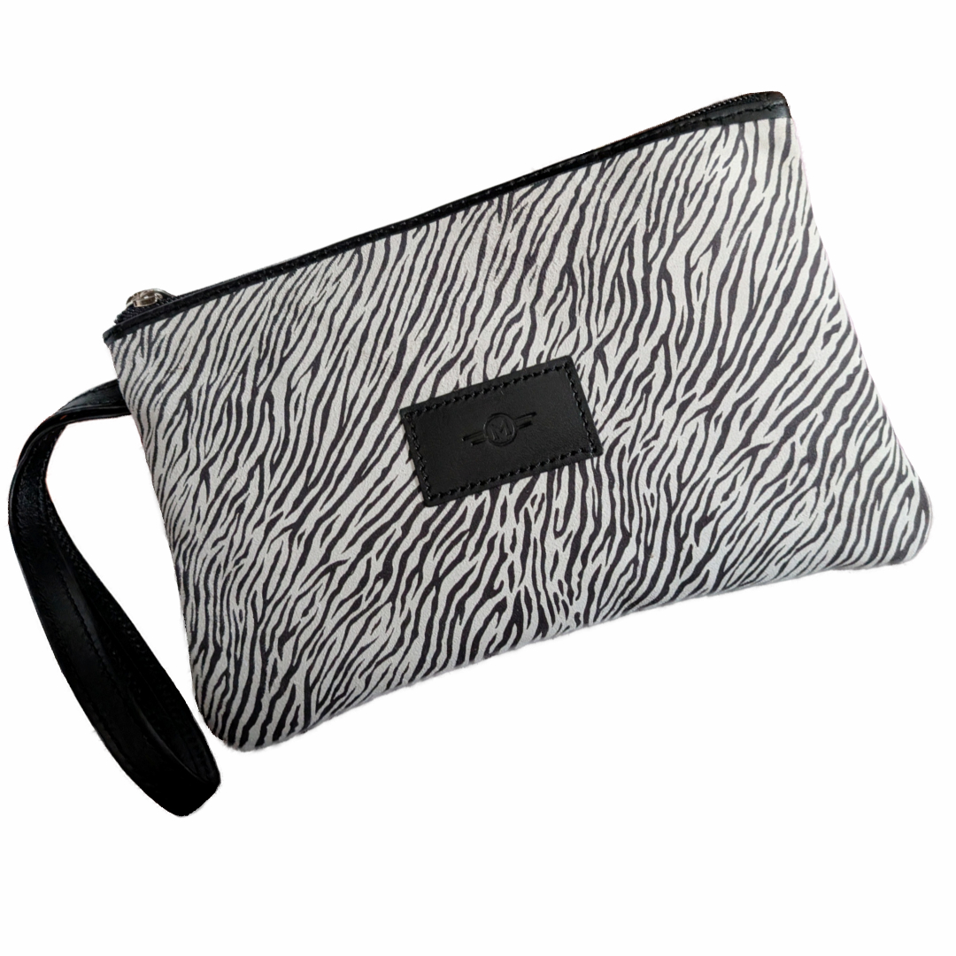 Bolso de mano de piel estampado cebra – Artesanía de Ubrique