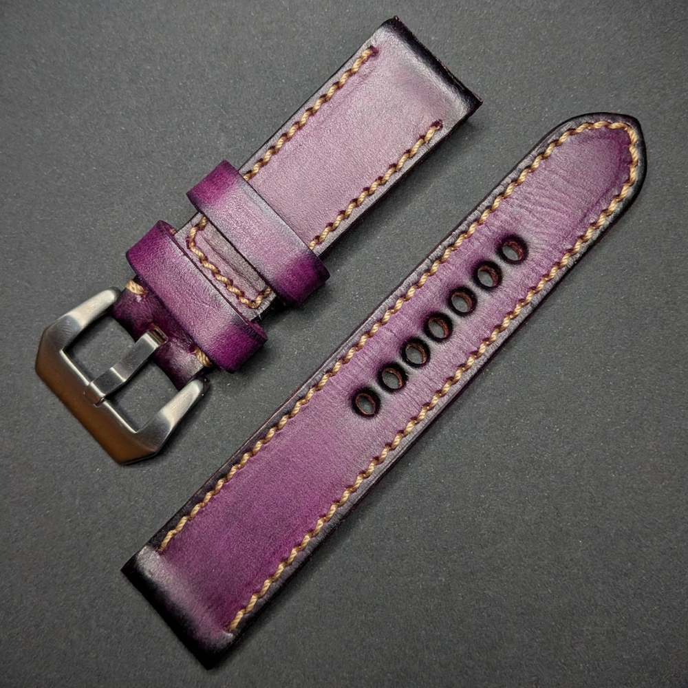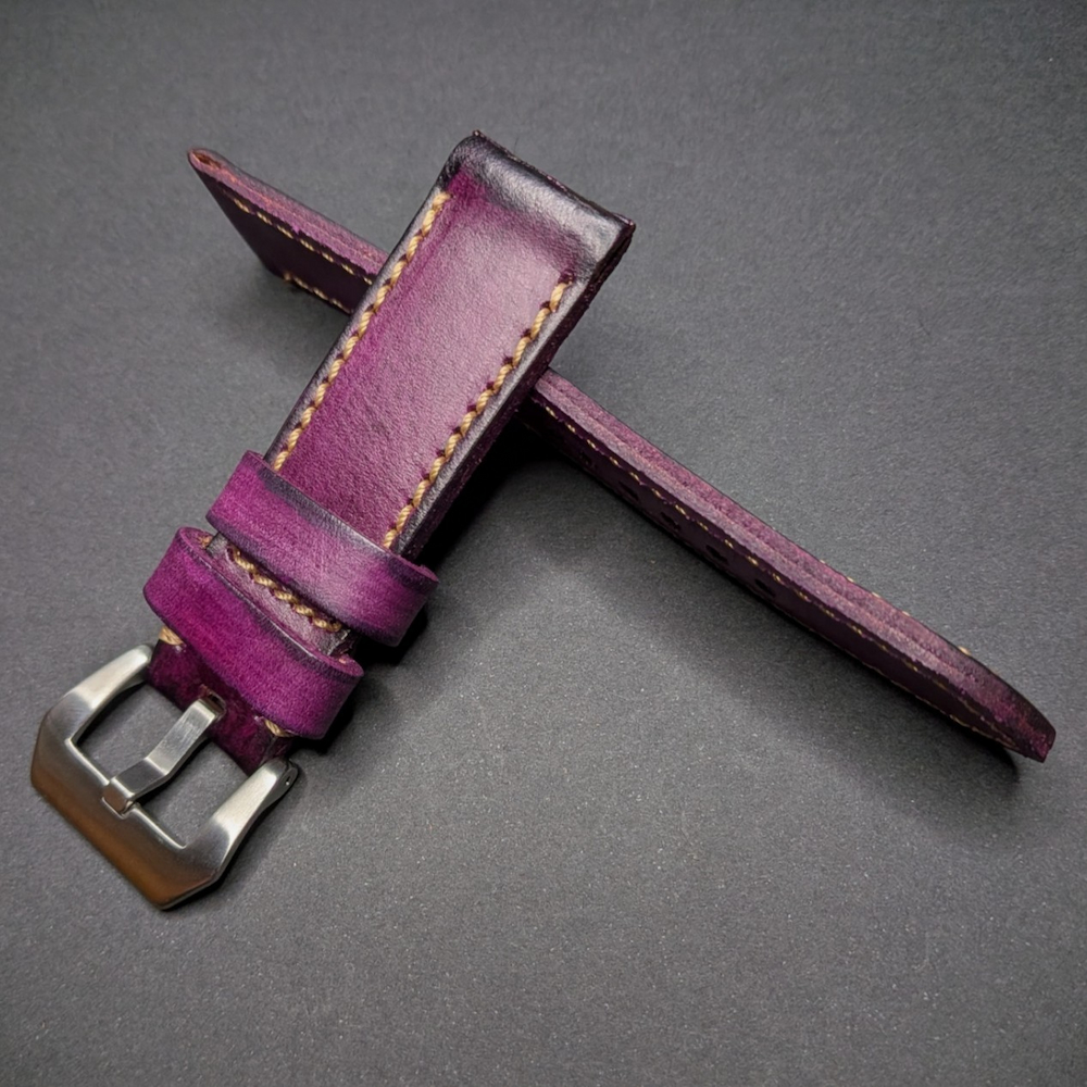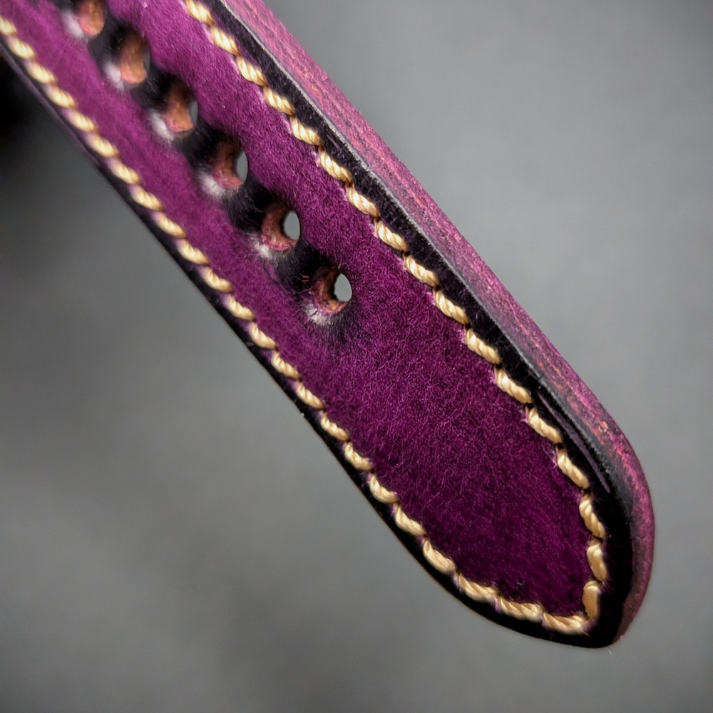 Color: Morado, con un bonito degradado. Esta correa es pintada a mano por nuestro artesano en su taller.